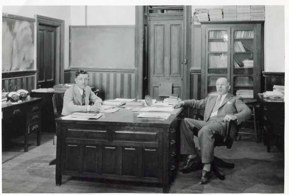 Left to right: Simpson Leroy Brown (1881–1966) and Arthur Holly Compton (1892–1962), U. Chicago (Compton was at Chicago 1923–1945, Nobel Prize–1927 for work done at Washington University) |