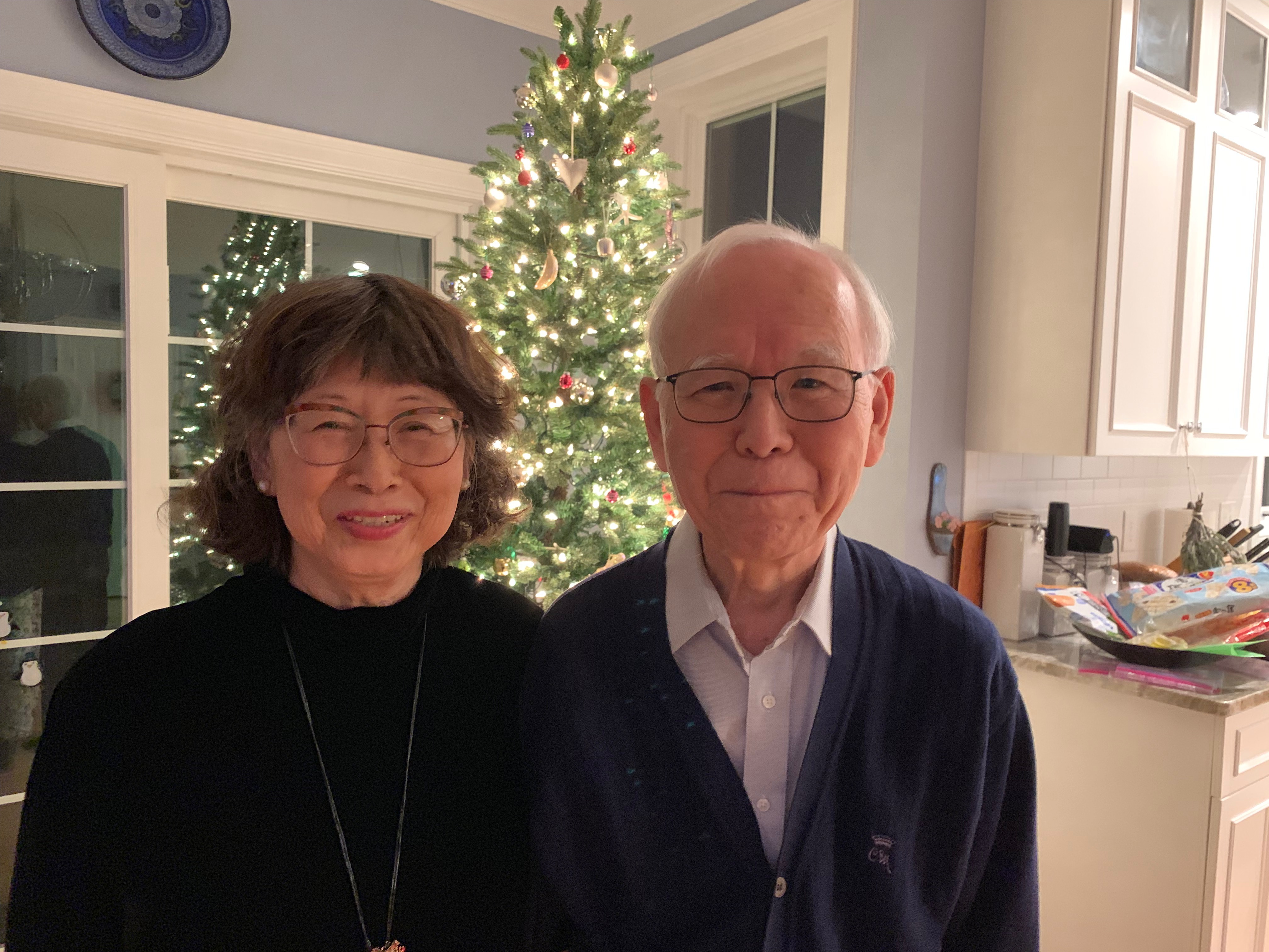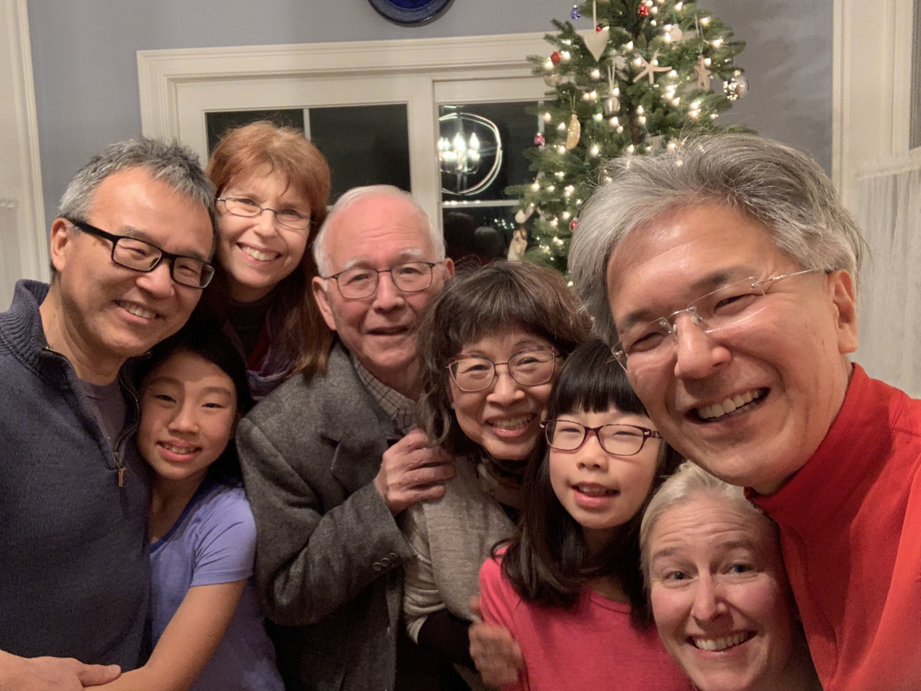 Left to Right: Son, Taturo (Researcher at Vertex Pharmaceuticals in Boston), Taturo's older daughter Mia, Alice, (Yoichi's wife), Takeshi, Mami, Taturo's younger daughter, Jenah, , Sandy Smole (Taturo's wife and Director of the MA State Lab), and son Yoichi (Music Director and Conductor). Christmas, 2018.