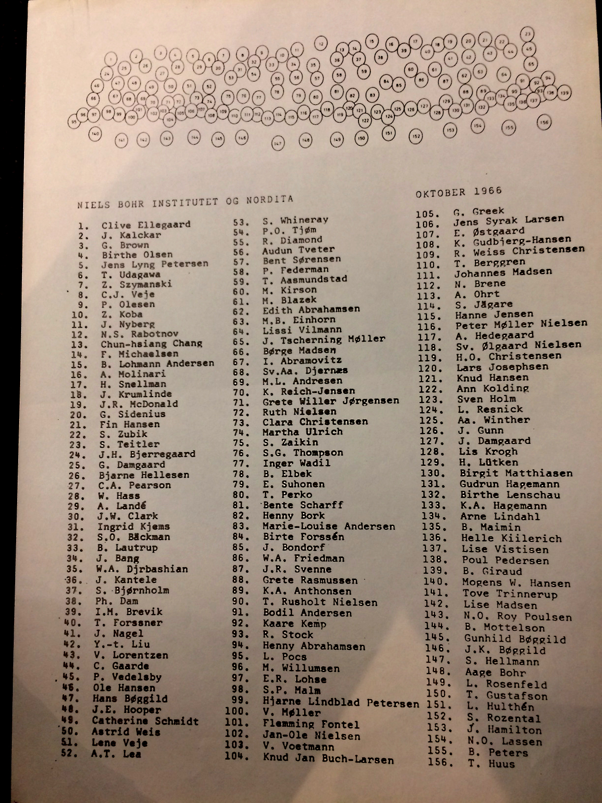Legend, NORDITA, Niels Bohr Institute, Copenhagen, Denmark 1966,