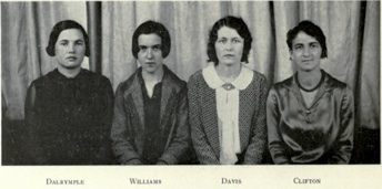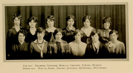 1918 Thelma Wright and Helena Bowers Von Koenneritz were student assistants in physics. Both were members of Pierian Literary Society and are included in 1918 picture at right.