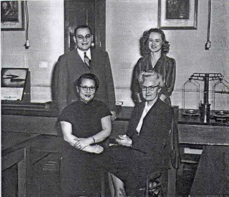Loraine was born in Texas in 1908, to George M. and Martha L. Decherd. Her father was a physician in Austin. She had an older brother, George M. Decherd Jr., who was director of the University of Texas Health Center (shown at left with Loraine). He died in 1951 shortly before the new center, which he planned, was opened. Loraine entered the University of Texas in 1926. She was active in the Ashbel Literary Society and was a member of Gamma Phi Beta Sorority. Loraine confided to her daughter that despite her preference for chemistry, she chose to study physics. She taught photography later in her career. Presumably she obtained her BA in 1929. Her MA thesis in 1930 was under the supervision of Professor Romberg. She is known to be in graduate school in Austin in 1933, since, during that year she met Dudley Williams, who became her husband in 1937. Following completion of her master’s, Loraine taught at Texas Women’s College. At some point, she taught in high school; however, her daughter reports that she was unhappy with the experience.