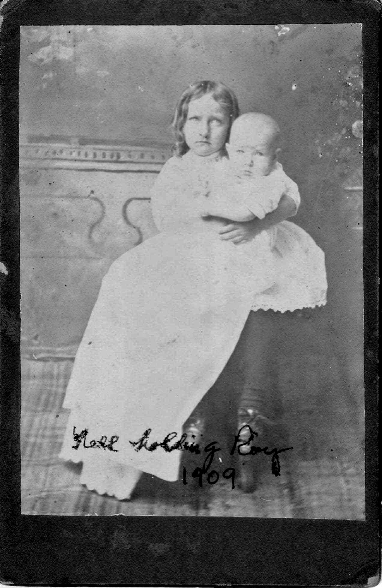 Nellie was born in Purdy, Missouri, March 3, 1903 to Sterling J. and Joanne Ferguson Bounds. She, Sterling and Joanne are seen with some of Nellie's siblings in the 1899 photo from Purdy, MO. The children are: front row: Nannie Bounds 4, Sterling William 6. second row: Delmar Jackson 1, Orrin Davis 8, Howell Smith 9 In 1908, the Bounds family moved three miles north of Weatherford, Texas, on the Springtown Highway in Parker County. In 1928, she sailed from Galveston-Havana to New York on the SS Shawnee. Her residence was Weatherford, TX.