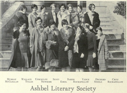 In 1917, Anamary attended the Alvin public school that had all grades in one 12-room building. She enrolled in Rice University following graduation but dropped out due to illness. In 1929, she entered UT. She lived in the Littlefield Dormitory for her first three years at UT. During her second year, she was the Vice President of the House Council that governed the dormitory (second from right in picture below left). She also was Vice-President of the Sophomore Class.