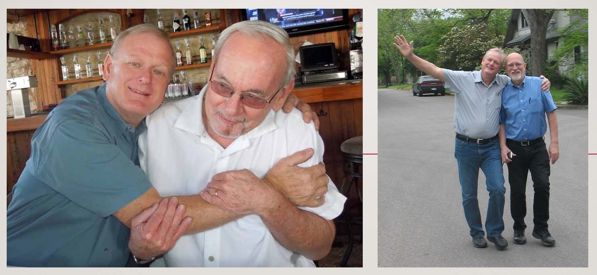Allan Schoeder and friends Left: Allan, George Sandefur and Kenny Schneider; Middle: Carol Monette, Donny Cannon, Allan and Danny Boyd, |