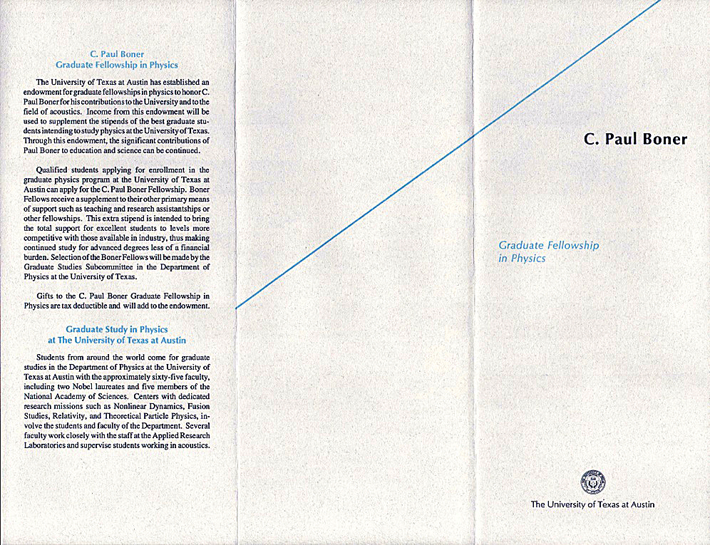 The C. Paul Boner Graduate Fellowship in Physics Brochure |