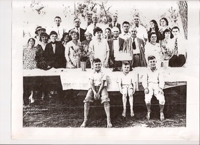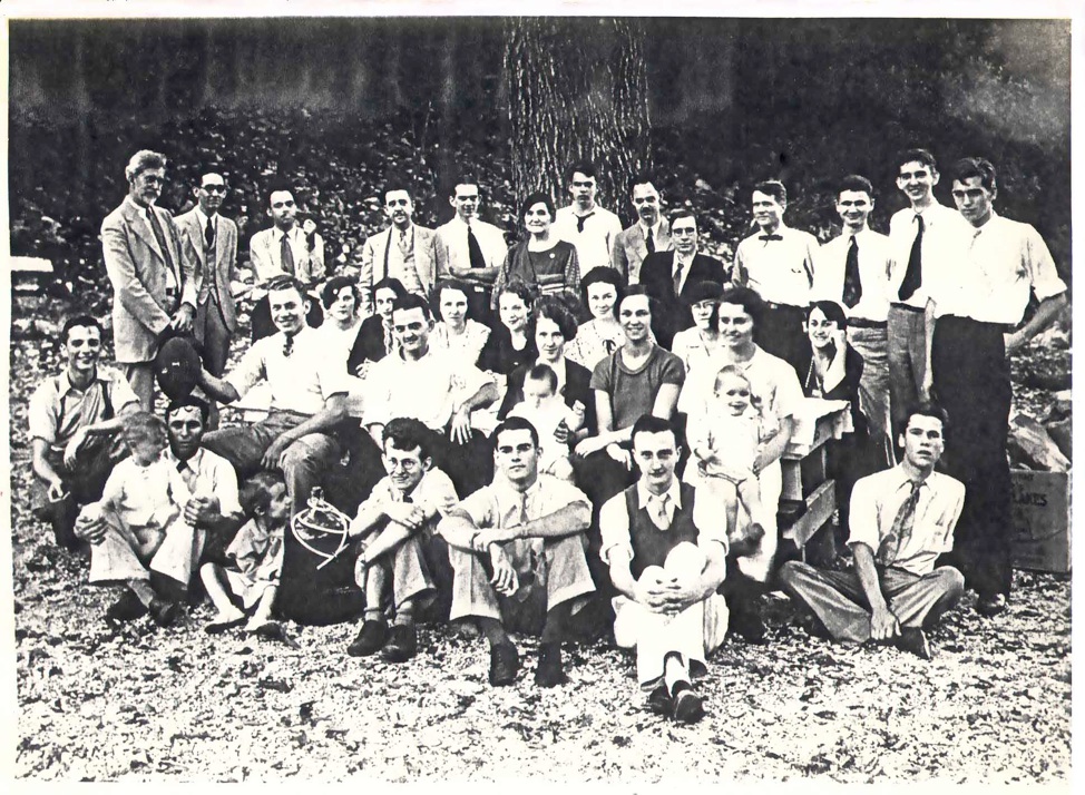 Physics Department Picnic 1933. Charles W. Macune, middle of front row. hand on wrist. For complete identification click here. |