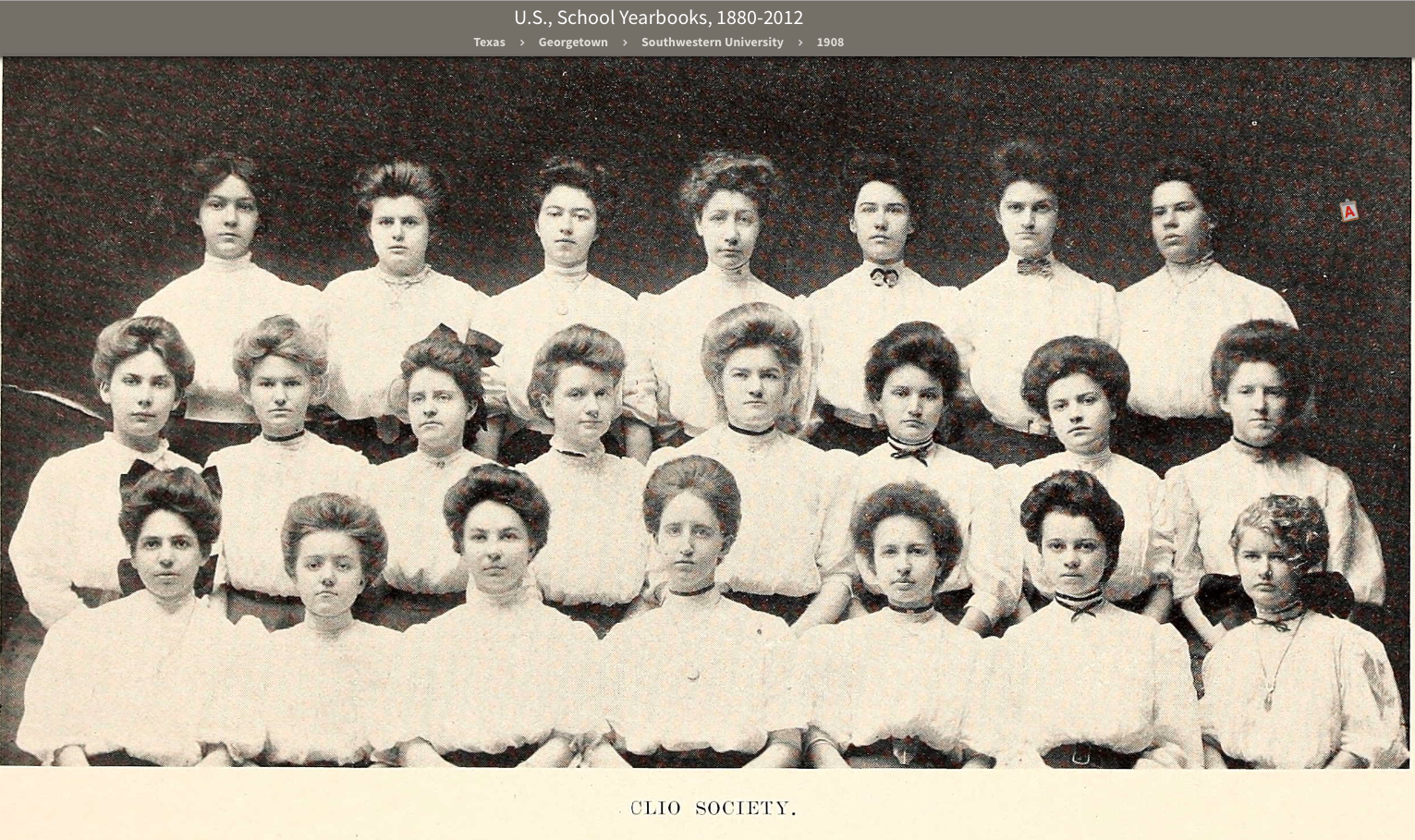 Lena Secrest, Clio Society, Southwestern University yearbook, Sou’wester, Georgetown U., 1908