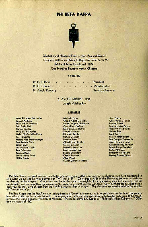 Charles W. Macune, Phi Beta Kappa, 1934 Cactus |