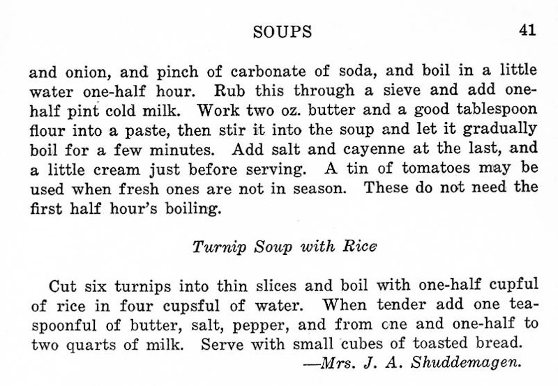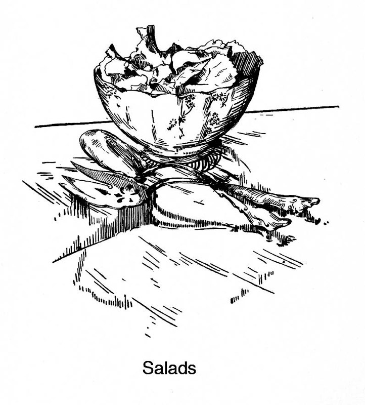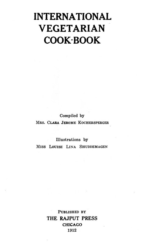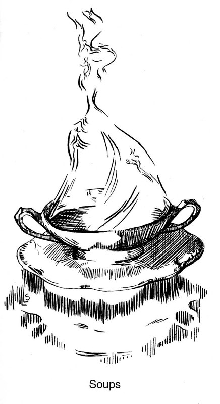 This cook book was illustrated by Louise Carolina (Lina) Shuddemagen(at right), Conrad’s sister, who was staying with him in Chicago at the time. She was a painter and twenty-two years of age. The cook book was supported by the Theosophy Society. Entries in the book include Shuddemagen family members. Louise initials(LLS) are present in some of the drawings. Illustrations from the book are below, followed by relevant recipes.