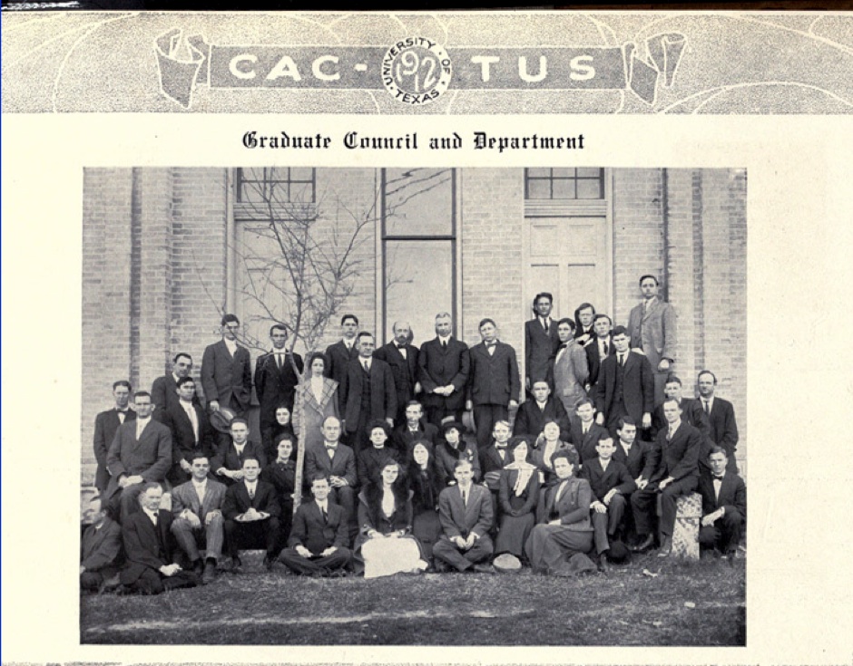John Avery Lomax, (Secretary of the Faculty); James Robinson Bailey, (Professor of Chemistry); *Martha Maud Smith (1875–1928) (Librarian-Cataloguer); Roberta Frances Lavendar (1871–1953), (Instructor of Latin); Frederic William Simonds, (Professor of Geology and Chairman of the School of Geology); *Morgan Callaway, Jr. (Professor of English); Harry Winston Harper (Professor of Chemistry and Dean of the Graduate Department); *Harry Birk Beck, (Superintendent of Building and Grounds)