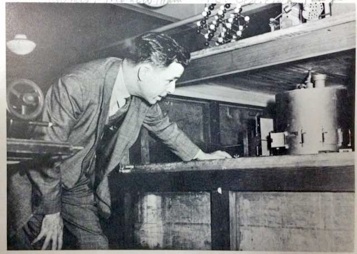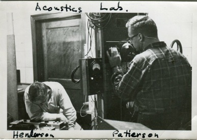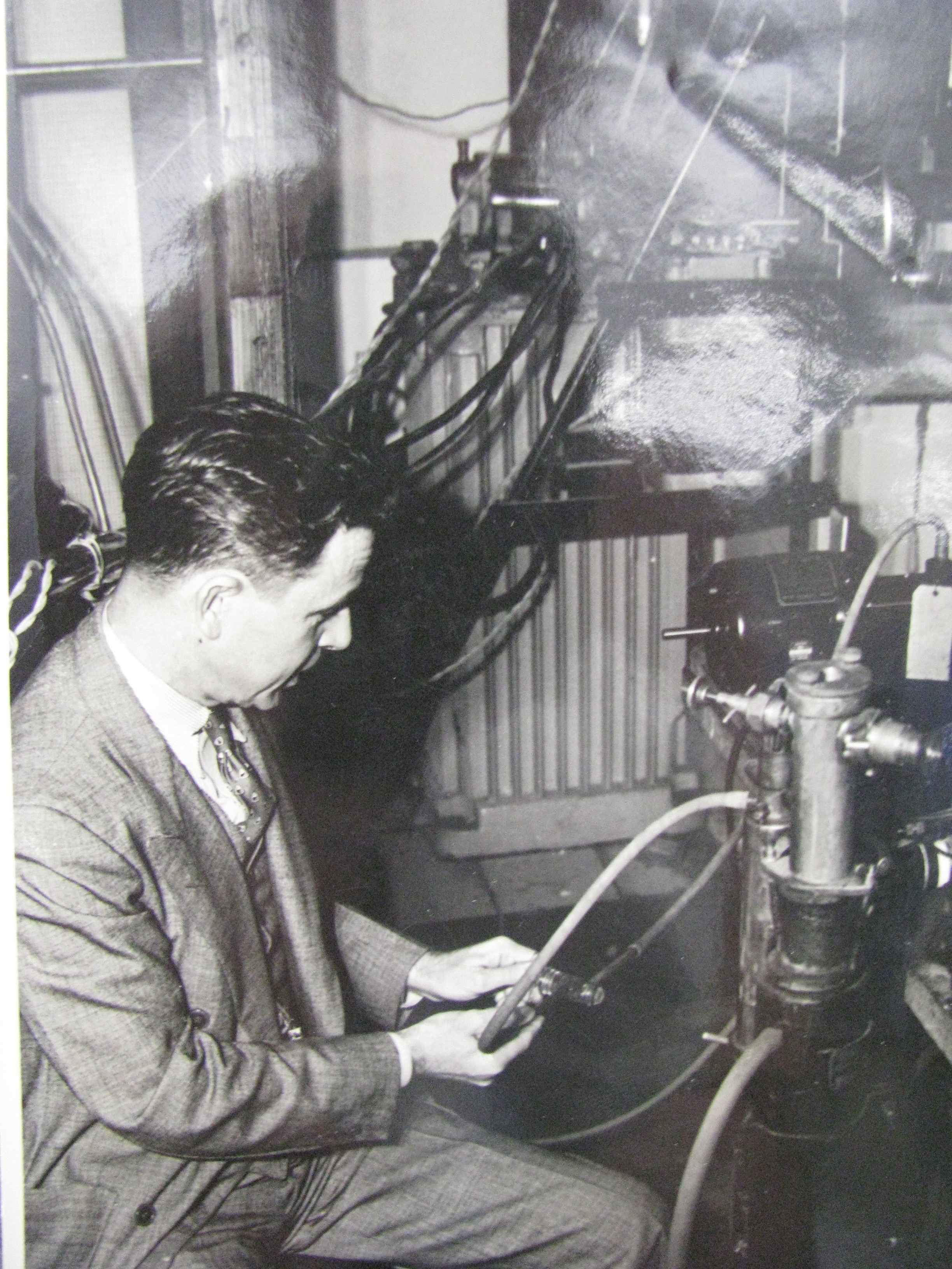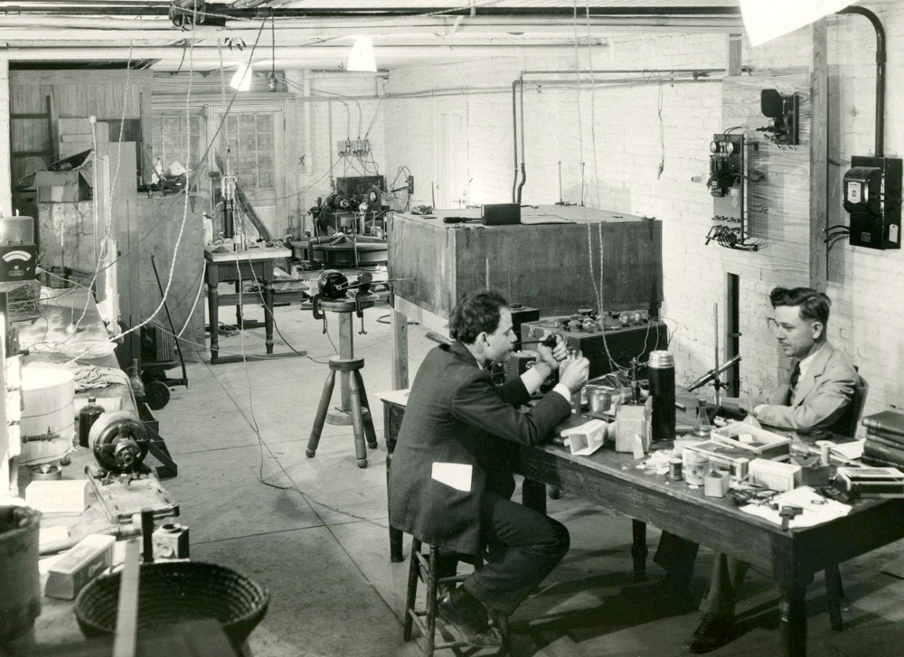 Arthur Lockenvitz and Malcolm Young Colby, basement of Old Main, ca. 1930–1931(Picture courtesy of Molly Colby Williams, great granddaughter) (Note meter, top left, in picture, likely the same one in my possession—Mel Oakes) |