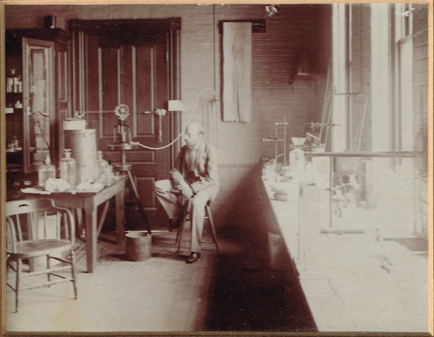 Dr. Mather in his lab, likely in Old Main. (Special thanks to Larry and Beth West. Few photos of labs in Old Main survive.)