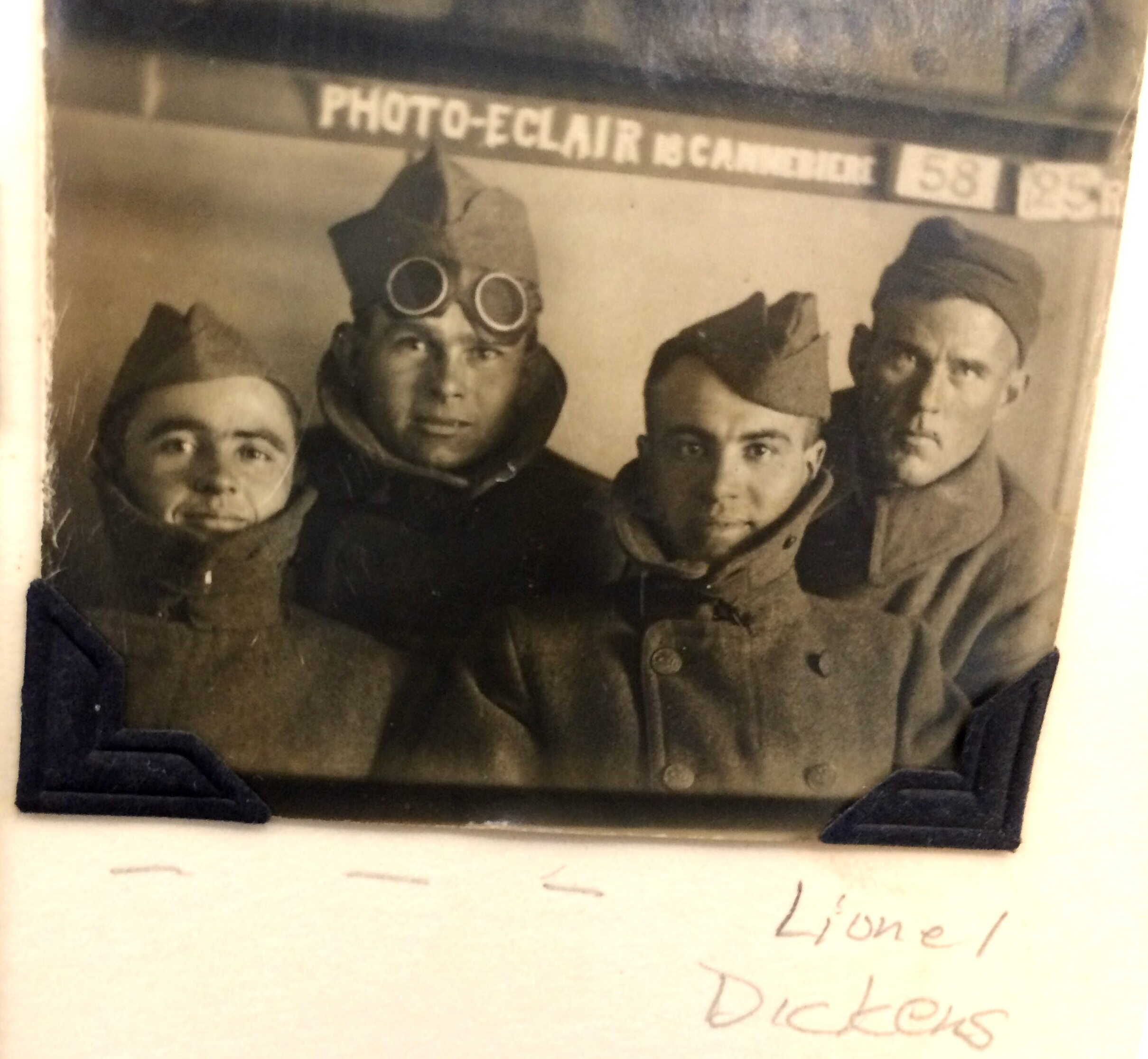 Here we see Lionel "Lon" Dickens in WWI uniform. He is at right end.