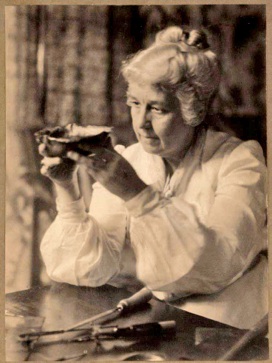 When business called Mr. Julian Yale to Chicago, he was soon joined by his mother and sister, and they established themselves in the pleasant house at No. 9 Ritchie Place, which for many years was a Mecca for true lovers of art and literature, whether these were presented in a vestment of wit or of philosophy. Here it was that Mrs.Yale and Mrs. Wynne collaborated to form a salon of real intellectual interest; here, too, Madeline and her brother wrought together in the unique and fascinating workshop for silver-smithing and jewelry-setting, the fame of which spread so far. As says her son, "Her artistic feeling perhaps found Its truest expression in designing and making hand wrought jewelry and other decorations, for which she had a notably bold and happy inspiration."