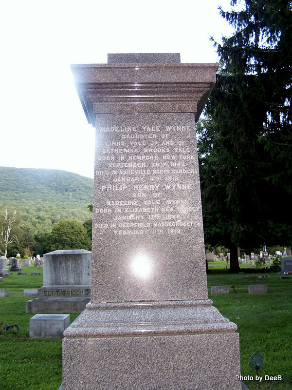 There are but few of kin to Mr. Wynne. His younger brother, Sidney Yale Wynne, died not long since in Redlands. Cal.. where he was a much-loved physician; his widow and four children survive; of the children, Sidney, the eldest, is in the United States Navy and Dudley with the American Expeditionary Force in France; Madeline is at school and Philip at home with his mother in Redlands. And there also remains of the family connection Mrs. John Yale of Poughkeepsie, and the only other survivor of all is the wife, who was Agnes Mary Whiting.