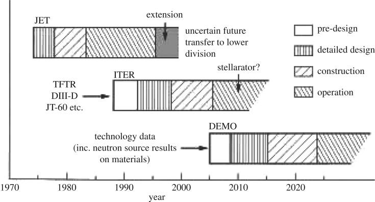 Below is a figure prepared by Bickerton for the 1998 Royal Society Discussion Meeting. Bickerton RJ. 1999. History of the approach to ignition. Phil. Trans. R. Soc. Lond. A 357, 397–413. (10.1098/rsta.1999.0334)