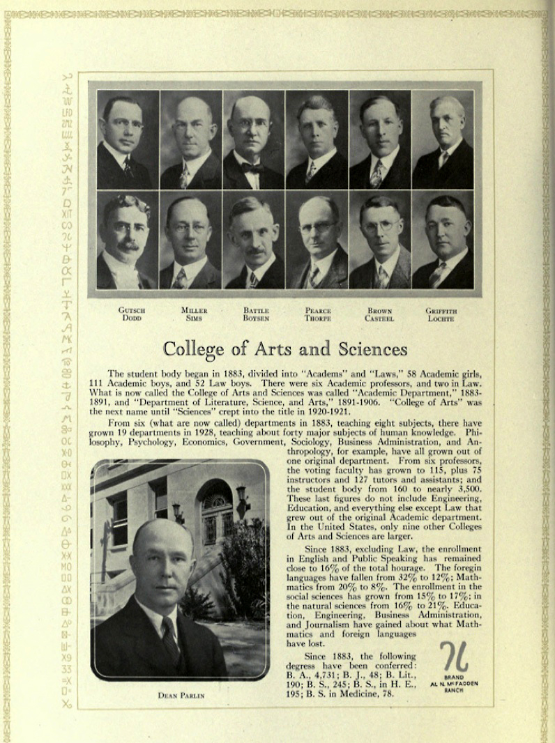 In many respects Dr. Brown was one of the early great teachers at the University. His freshman and sophomore classes were large and enthusiastic, and they were taught by a dedicated man in a loud and convincing voice. His points of view in class were driven home as if by a hammer, as were also his points of view in discussions outside the classroom. While advanced and graduate classes in physics were small during most of his teaching years, his classes were usually larger than the departmental average.