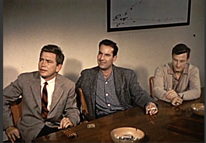 Following high school, Bill enrolled in Stanford University where he majored in physics. He graduated in 1951 and then enlisted in the U. S. Navy where he attended radar school. After his discharge he entered graduate school at Stanford. In 1953, he married Stephanie Jones, from Victoria, Canada. He had met Stephanie while visiting a friend in New York. His PhD was awarded in 1958. His thesis, Nucleon Correlations Effects in High Energy Electron Scattering, studied the effect of two-nucleon correlations on the scattering of high energy electrons from heavy nuclei using a high energy approximation due to Schiff. His brother, James E. Drummond, Jr., also a plasma physicist, had graduated there two years earlier. He next joined a research team at General Atomics, eventually becoming Director of the Plasma Turbulence Laboratory. It was there he met David Pines and Marshall Rosenbluth. A frame from a 1960 film, "Reaching for the Stars", made by General Atomic and the Texas Atomic Energy Research foundation shows Drummond (in the center) at GA. At right is fellow scientist, Nick Krall.